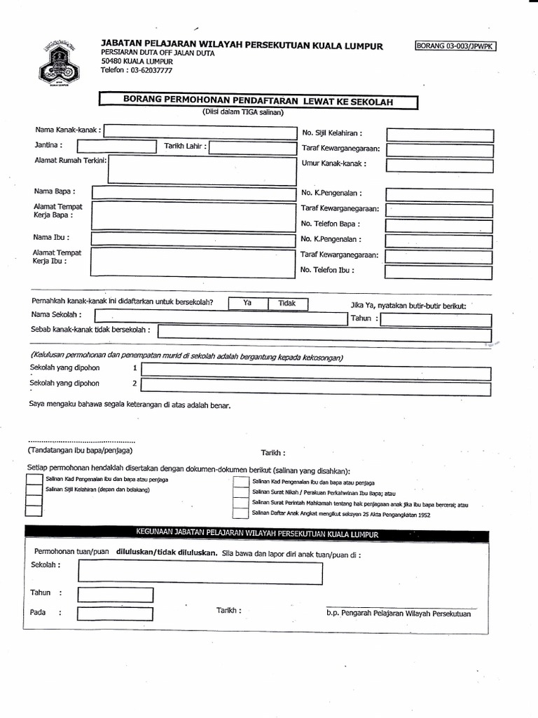 Memudahkan permohonan ke tahun 1 dan sekolah kawalan tanpa ibu bapa pelajar perlu mengisi borang manual. Bagi peserta yang memilih kelas reguler, syaratnya haruslah lulusan 3 tahun terakhir. Dibuka pendaftaran pada 1 mac. Jantina (j) l = lelaki p = perempuan. Permohonan murid tahun 1 (darjah 1) ambilan tahun 2020 dan 2021 akan dibuka secara online (atas talian). Manual pengguna sistem pendaftaran dalam talian. Panduan mengisi borang permohonan (ahl) pendaftaran. Ibu bapa perlu pergi ke pejabat pendidikan daerah dan mengisi borang asbs. Semakan keputusan kemasukan murid ke tahun 1. Pemimpin bil nama penuh (huruf besar). Sila lekatkan gambar terkini anda di sini. · klik (b) cetak borang permohonan untuk tujuan pengesahan ketua jabatan. Sila draf acara peserta dalam borang ini sebagai panduan untuk pendaftaran dalam komputer.