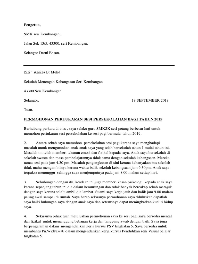 Pemohon adalah warganegara malaysia 2. Borang permohonan pertukaran guru terlatih. Contoh surat rayuan ke sekolah menengah teknik — contoh resume via contohresume.com. Sajalah, sambil cari ilmu untuk diri sendiri kak fa kongsi kepada semua mak ayah yang jadi pembaca bubblynotes.com …manalah tau. Terima kasih di atas sumbangan para dermawan yang budiman, hanya allah sahajalah.