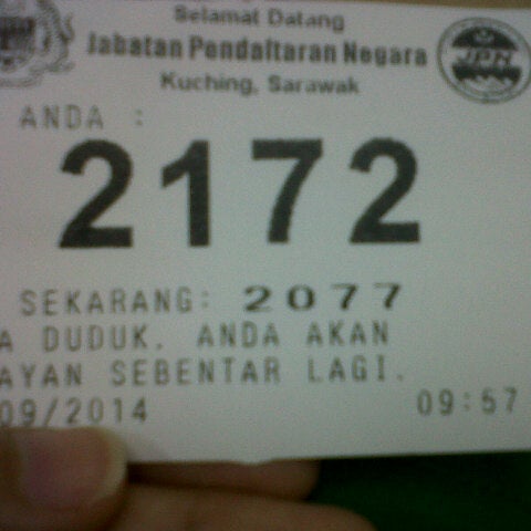 Kini jpn menjadikan hari rabu sebagai hari tanpa tunai. Prnsabah sidang media ketua pengarah jabatan pendaftaran negara, datuk ruslin jusoh mengenai isu individu memiliki. Selamat datang ke pautan pintas portal rasmi jabatan akauntan negara malaysia. Sorang scan dah boleh masuk kami 3 orang. Ambik nombor giliran kat kaunter pendaftaran disebelah escalator ni je.